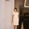 ĐẦM XỐP TRẮNG HOA KT NỔI VAI CAPE